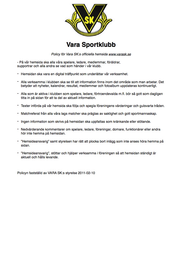 Klicka på bekräftelselänken i det mejl vi skickat dig för att börja ta emot uppdateringar från Vara SK.